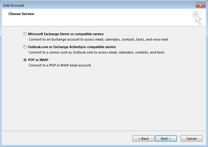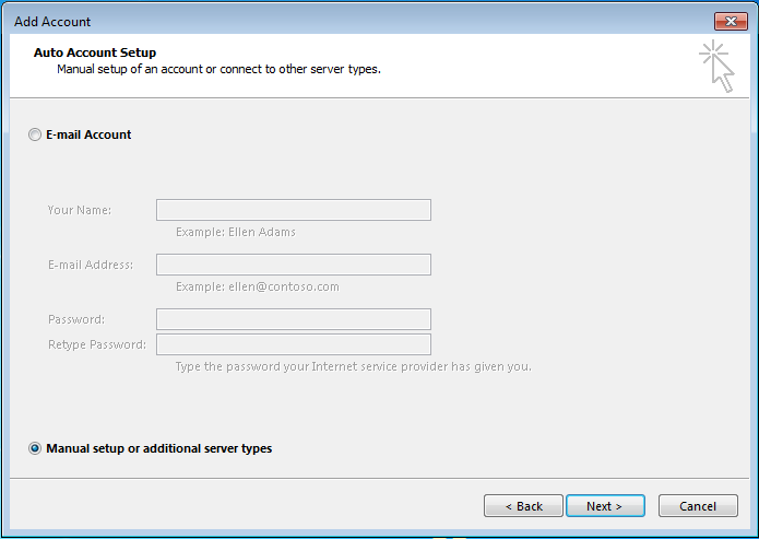 On the the next window select "Manual setup or additional server types" and click "Next".
