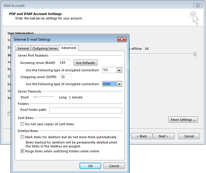 Click on the "Advanced" tab and provide the following inputs. Then click "Ok" button.
