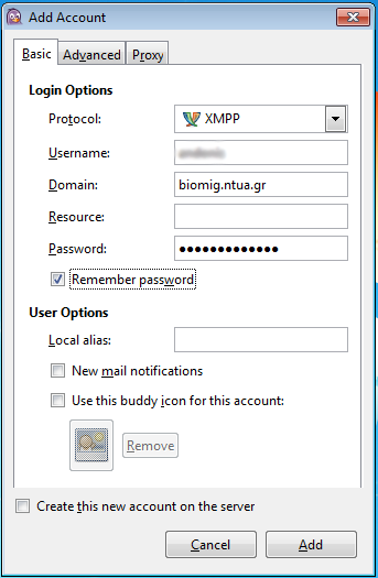 biomig.ntua.gr. If you already have an account you may setup your client (Pidgin) through the instructions shown below. -