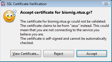 Click "Accept" for accepting BIOMIG's digital certificate.