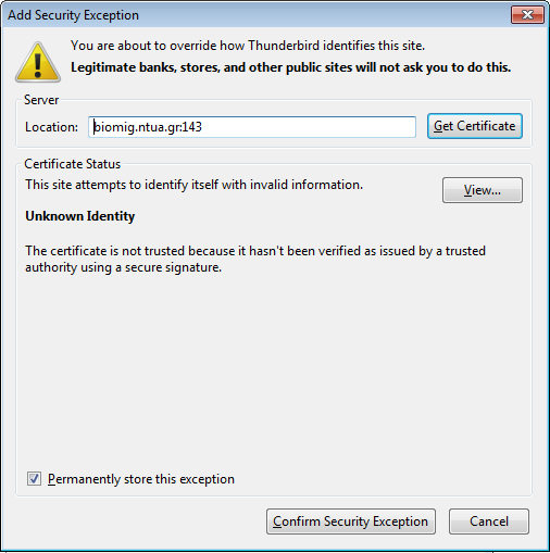 BIOMIG offers a dedicated mail server, under the hostname "biomig.ntua.gr", for providing email services to its members. Below you will find instructions for setting up an email account with biomig.ntua.gr for two popular mail clients (Mozilla Thunderbird, Microsoft Outlook).